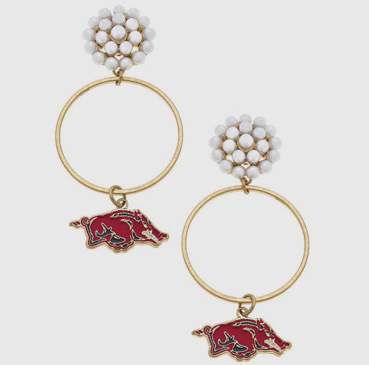Arkansas Razorbacks Pearl Cluster Enamel Hoop Earrings