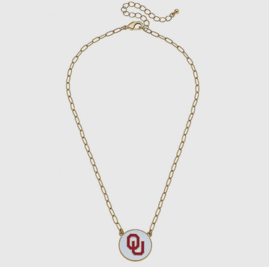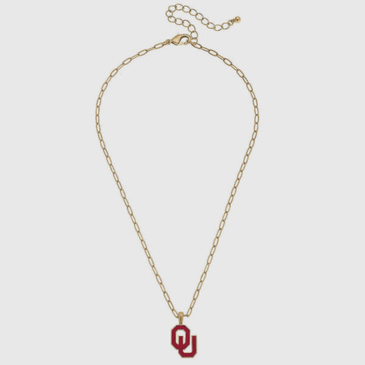 Oklahoma Sooners Enamel Pendant Necklace in Crimson