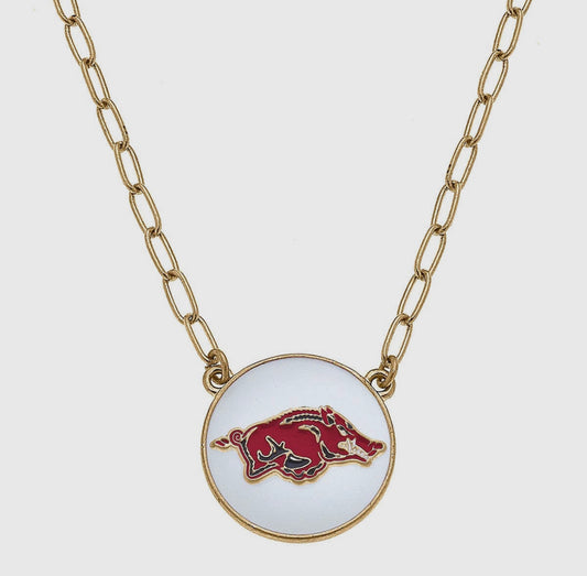 Arkansas Razorbacks Enamel Disc Pendant Necklace in White