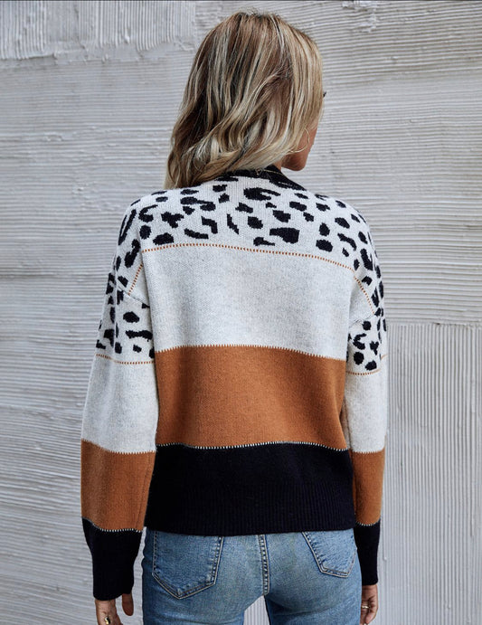 Leopard color block sweater